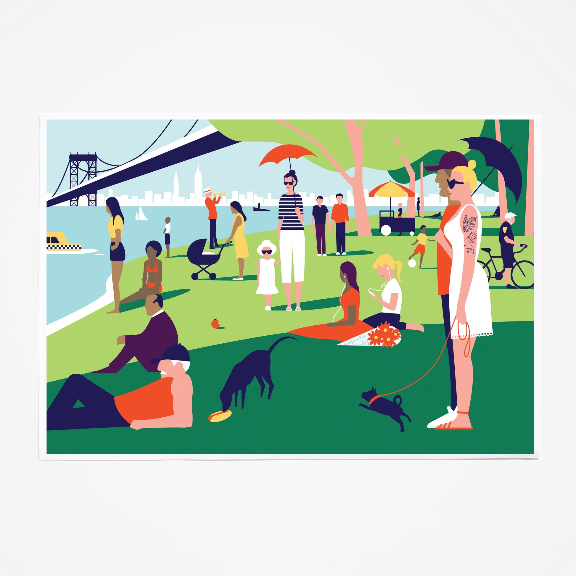 Illustrator Ben Wiseman channels Georges Seurat’s 1884 painting, “A Sunday Afternoon on the Island of La Grande Jatte,” to create the ideal New York image for The Times Opinion article, “Our Newly Lush Life,” published July 14, 2012. The image is part of our collection of editorial illustrations being offered for the first time ever to the public as unframed or framed fine-art prints.
